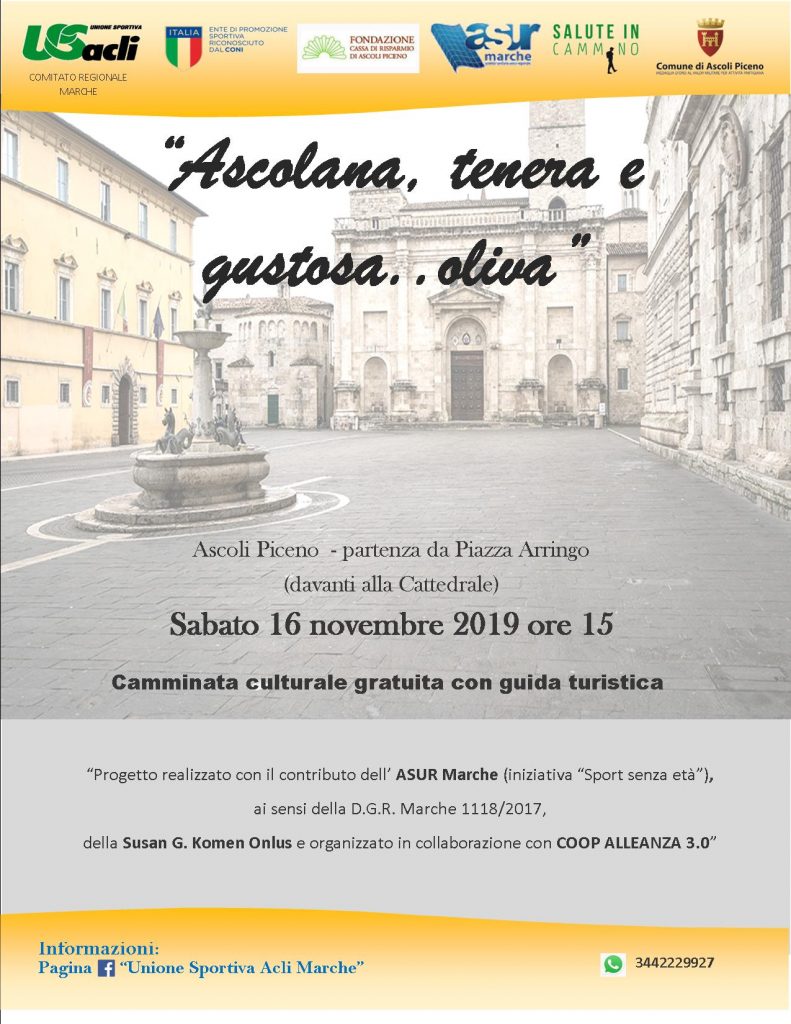 ASCOLI – “Ascolana, tenera e gustosa oliva”. E’ questo il titolo di una nuova iniziativa organizzata dall’Unione Sportiva Acli Marche nell’ambito del progetto “Sport senza età”.