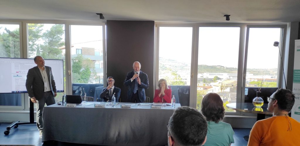 Al via il bando per sostenere la transizione digitale e green delle piccole e medie imprese turistiche marchigiane. A presentarlo in anteprima la Regione Marche, con il supporto tecnico e operativo di SVEM – Sviluppo Europa Marche, nel corso terzo meeting del progetto europeo TOURBO “Boosting the transition pathway of MSMEs in tourism with green and digital transformation”, che si è tenuto il 24 e 25 settembre in varie location tra Ancona e provincia. I lavori si sono aperti al Seeport Hotel di Ancona, con un incontro tecnico tra i partner. Presenti l’assessore regionale al Bilancio e Politiche Comunitarie, Goffredo Brandoni, il vicepresidente di SVEM, Monica Mancini Cilla, l’assessore al Turismo del Comune di Ancona, DanieleBerardinelli e Massimiliano Polacco, membro di Giunta e Consiglio della Camera di Commercio Unica delle Marche con delega al Turismo. “Ringrazio la SVEM – ha affermato l’assessore Brandoni – che si sta attivando per reperire risorse importanti nel settore del turismo. Un comparto che puntiamo a sostenere anche attraverso i finanziamenti della Programmazione Europea 2021 – 2027. Collaborazione e sinergia sono le parole chiave di questa iniziativa che si inserisce perfettamente all’interno della strategia adottata dalla Regione Marche per valorizzare e potenziare il suo sistema turistico”. Il meeting ha visto la presenza della delegazione internazionale, composta da una quarantina tra rappresentanti istituzionali, imprenditori, ricercatori universitari e professionisti specializzati in sostenibilità ambientale e tecnologie digitali dei Paesi partner.