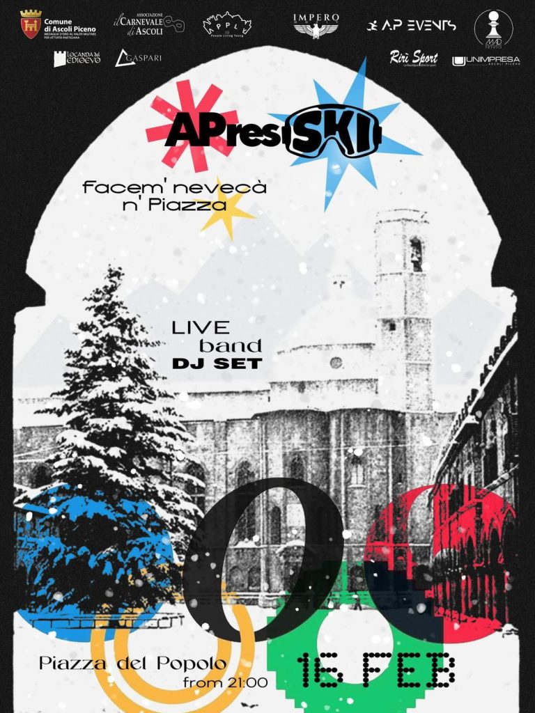Lunedì 16 febbraio sempre in Piazza del Popolo, sempre alle 21 APresSKI, il nuovo format in stile montano con veri e propri sparaneve per un evento unico