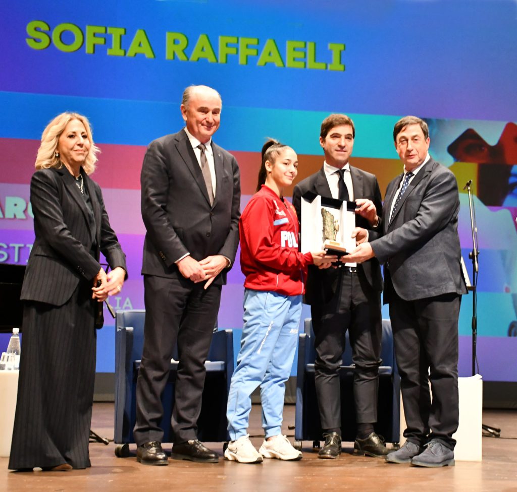 “A Sofia Raffaeli prima italiana nella storia a vincere un oro individuale ai Campionati del Mondo nella ginnastica ritmica, campionessa mondiale all-around 2023, bronzo olimpico a Parigi 2024. Per aver scritto pagine di storia della ginnastica ritmica italiana e mondiale, per portare nel mondo il senso dell’impegno, della passione, della determinazione coniugati con l’elegante perfezione di esercizi complessi in una naturalezza che ha incantato e continuerà ad incantare le giurie ed il pubblico in tutto il mondo, portando con sé un forte legame con la propria terra di origine dove continua ad allenarsi e a crescere. I suoi traguardi valorizzano le Marche e ispirano le nuove generazioni a credere nel proprio sogno. E per il suo impegno a diffondere, tra i giovani, campagne importanti di sensibilizzazione su questioni sociali, dimostrando oltre al valore sportivo, anche il valore umano e morale della giovane campionessa che richiama tutti ad ascoltarsi per fare squadra ad ogni livello”.