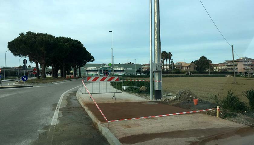 Ma torniamo alla situazione della Riviera. La “Ciclovia della costa Picena” percorrerà via San Francesco, sfocerà in via San Giacomo per collegarsi con la ciclabile del lungomare. Era inziata la scorsa primavera in via del Cacciatore e si era fermata in via Da Buglione, nel cortile della scuola Spalvieri, a causa dei pini che ostruivano il percorso. Tra l’estate e l’autunno 2017 sono stati segati i pini e rimpiazzati con i “bagolari”. Ma nel frattempo non erano stati risolti i problemi di alcuni pali che intralciavano il tracciato. L’ultimo ostacolo è stato superato in questi giorni, con l’abbattimento di un tabellone pubblicitario in via del Cacciatore (guarda la sequenza fotografica), all’uscita dello svincolo della superstrada Ascoli-Mare.