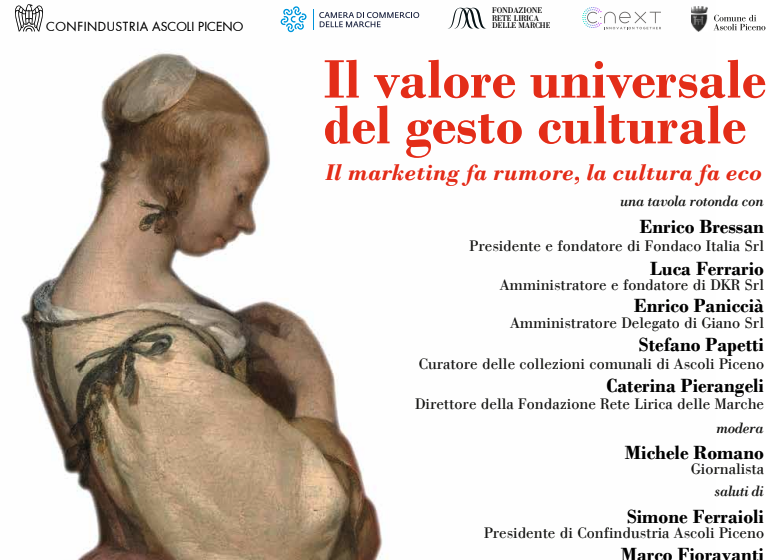 Il Teatro Ventidio Basso di Ascoli Piceno ospiterà oggi l’evento “Il valore universale del gesto culturale”, un appuntamento pensato per raccontare il ruolo strategico della cultura nella vita delle imprese, nella loro reputazione e nella relazione con la comunità, promosso da Confindustria Ascoli Piceno, con il sostegno della Camera di Commercio delle Marche nell’ambito del progetto Leadership e Innovazione, e in collaborazione con Fondazione Rete Lirica delle Marche, Cnext e Comune di Ascoli Piceno.