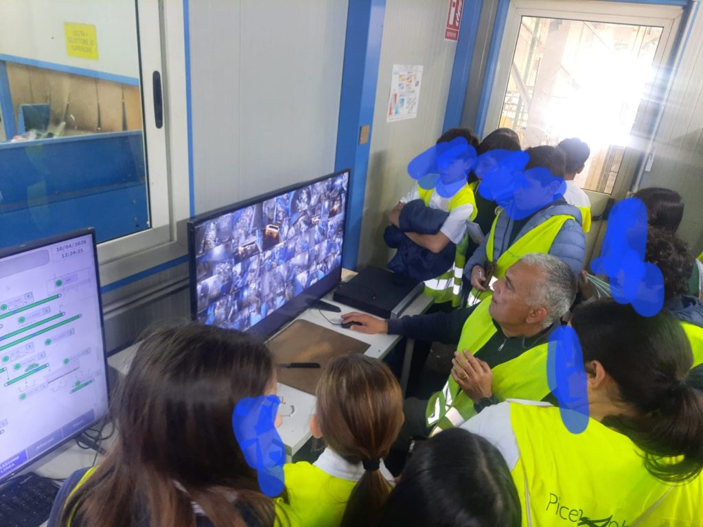 Durante la visita, i ragazzi hanno potuto osservare da vicino il funzionamento dell’impianto, a partire dalla fase iniziale in cui i rifiuti vengono registrati e pesati tramite sistemi informatizzati.