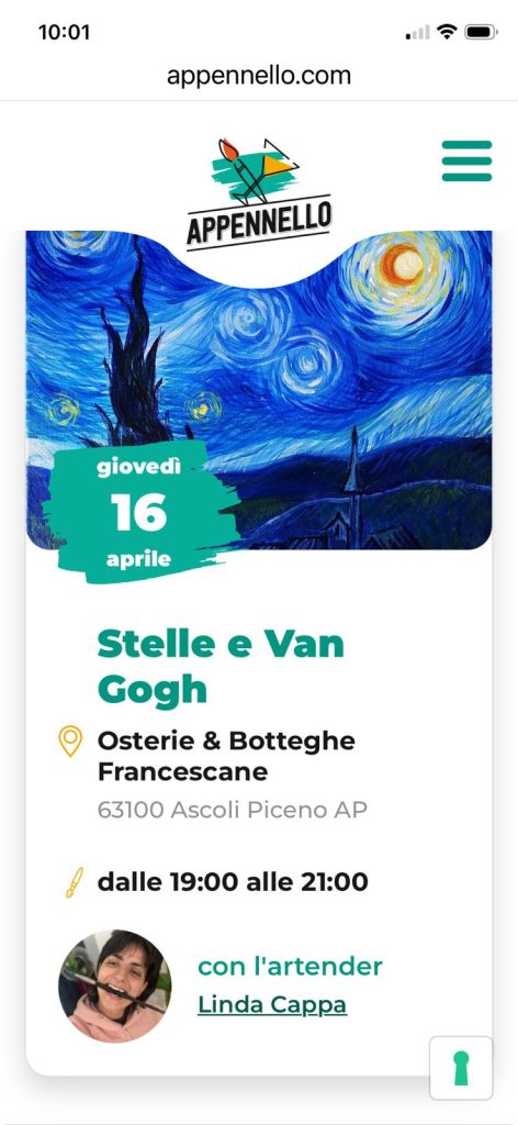 Protagonista dell’esperienza sarà una reinterpretazione della celebre “Notte Stellata” di Vincent van Gogh Notte stellata: un capolavoro iconico che, grazie alla guida dell’Artender, prenderà forma anche sulle tele dei partecipanti, ognuno con il proprio stile e la propria sensibilità.