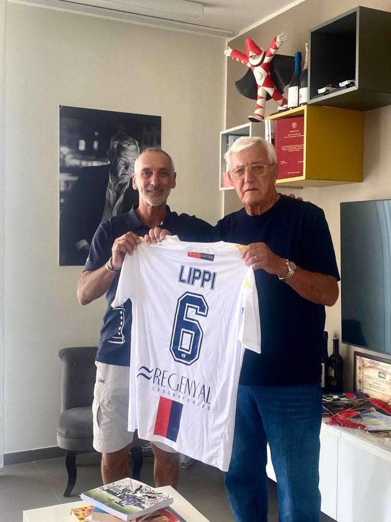 La Samb ha omaggiato nei giorni scorsi l’ex CT della Nazionale Italiana di Calcio e Campione del Mondo 2006 𝑴𝒂𝒓𝒄𝒆𝒍𝒍𝒐 𝑳𝒊𝒑𝒑𝒊 della maglia della promozione in serie C, con una personalizzazione che richiama il numero di maglia che ha maggiormente indossato nel corso della sua lunghissima carriera. La consegna è avvenuta per il tramite di 𝑷𝒊𝒆𝒕𝒓𝒐 𝑹𝒐𝒎𝒂𝒏𝒊, direttore di Viareggio Porto all’approdo della Madonnina, fautore da oltre trent’anni del gemellaggio tra San Benedetto e Viareggio. Lippi ha mostrato di gradire molto l’omaggio della società rossoblù alla quale ha inviato un grande incoraggiamento per le prossime fatiche sportive.