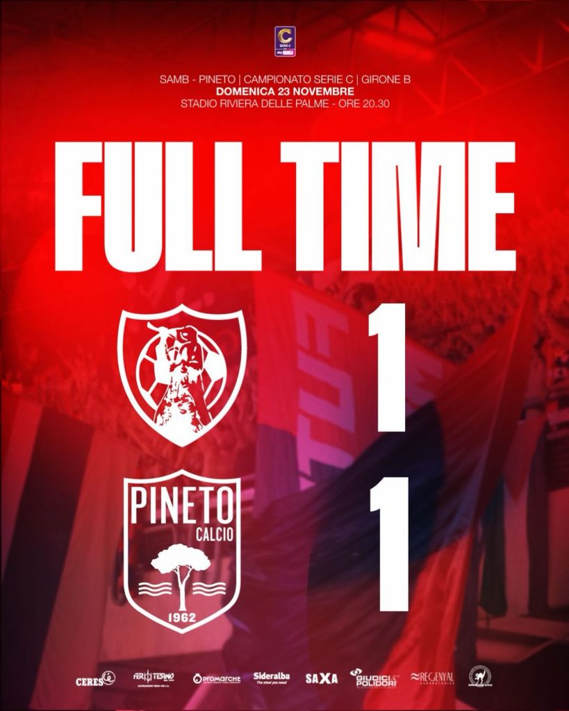 PINETO (4-3-2-1): Tonti ; Baggi , Postiglione , Frare , Borsoi ; Germinario , Lombardi (41’ st Vigliotti ), Schirone ; Pellegrino (20’ st Mastropietro ), Bruzzaniti ;D’Andrea . All.: Tisci .