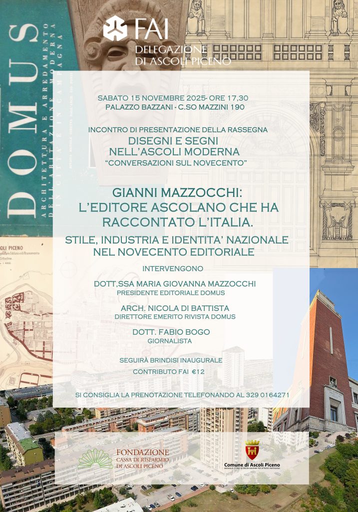 La rassegna si aprirà sabato 15 novembre alle ore 17.30 con l’evento inaugurale dal titolo: Gianni Mazzocchi: l’editore ascolano che ha raccontato l’Italia. Stile, industria e identità nazionale nel Novecento editoriale.