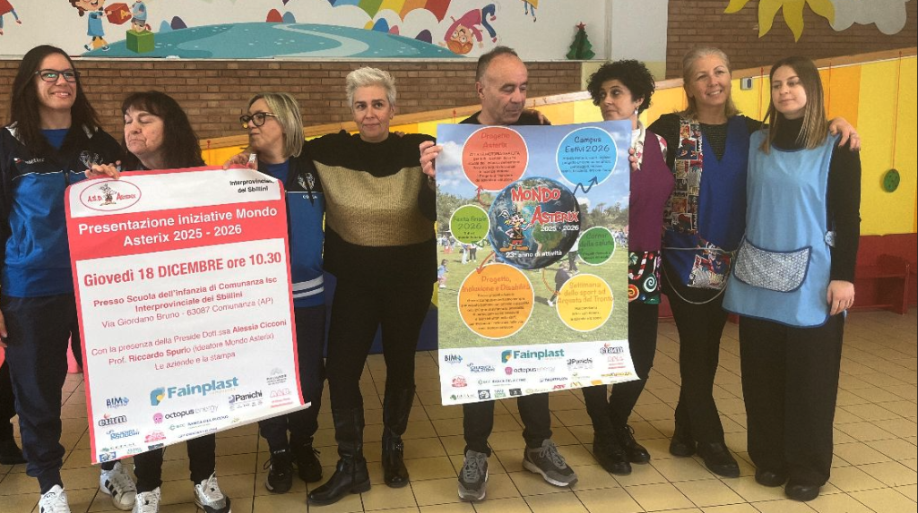 Come sottolinea il Prof. Riccardo Spurio, ideatore dell’area strategica, sportiva e marketing e motore ispiratore delle iniziative: «Le attività promosse costituiscono un investimento sul capitale umano. I risultati emergeranno probabilmente nel lungo periodo, ma l’attività motoria, la salute e le relazioni sociali devono essere costantemente coltivate, poiché rappresentano un tridente essenziale per la formazione dell’adulto del futuro». A fargli eco è la Preside dell’ISC Sibillini, Alessia Cicconi: «Siamo orgogliosi di ospitare questa festa di presentazione del Mondo Asterix 2025/2026. È un onore partecipare a questa iniziativa che ci vede coinvolti da diversi anni; l’attività motoria è fondamentale per i bambini della scuola dell’infanzia e ringraziamo i dirigenti del progetto e il Professor Riccardo Spurio per averci incluso in questa lodevole iniziativa. L’ISC Sibillini comprende le scuole di Comunanza, Montemonaco, Smerillo, Montefalcone e Montelparo: presidiamo un vasto territorio e, grazie a questa collaborazione, diamo la possibilità ai bambini dai 3 ai 6 anni di svolgere attività motoria gratuitamente. La motricità è fondamentale per lo sviluppo dei più piccoli e un’iniziativa di questo tipo rappresenta per noi un motivo di prestigio che qualifica il nostro Istituto Comprensivo. Da diversi anni collaboriamo inoltre con la Pallavolo Comunanza, che mette a disposizione le proprie allenatrici per avviare alla disciplina i ragazzi e le ragazze più giovani».