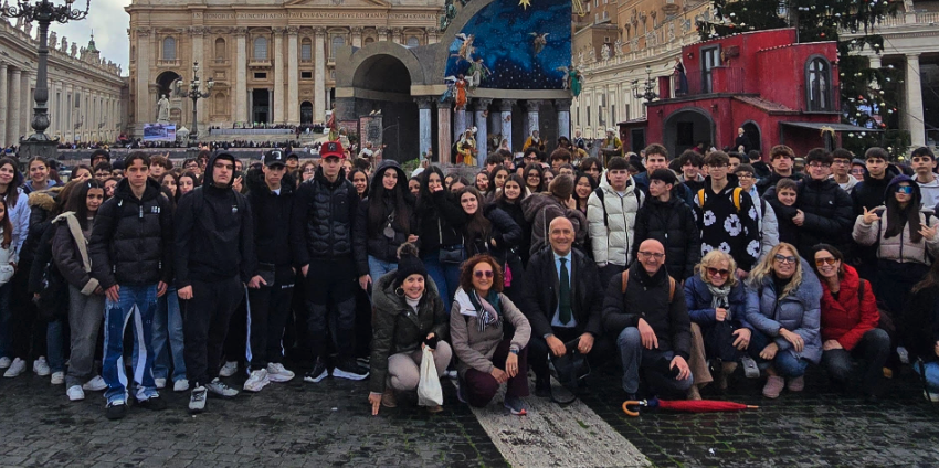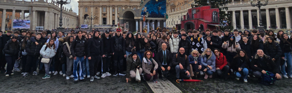 Oggi, mercoledì 17 dicembre, quasi 200 studenti delle classi prime dell’Istituto Tecnico del settore Economico e del Liceo Linguistico dell’IIS “A. Capriotti” sono stati ricevuti in Vaticano da Papa Leone XIV. Guidati dal Dirigente Scolastico, prof. Enrico Piasini, dal docente referente Giovanni Maria Bettoni e dai proff. Danilo Barbieri, Chiara Bellabarba, Maria Donata Cecere, Maristella Di Nardo Di Maio, Valeria Forieri, Elena Mandolini, Rita Pelliccioni, Rosanna Polidori, Sabrina Proietti, Alessandra Ruggieri, don Roberto Traini, hanno incontrato il Pontefice durante l’udienza generale in piazza San Pietro.