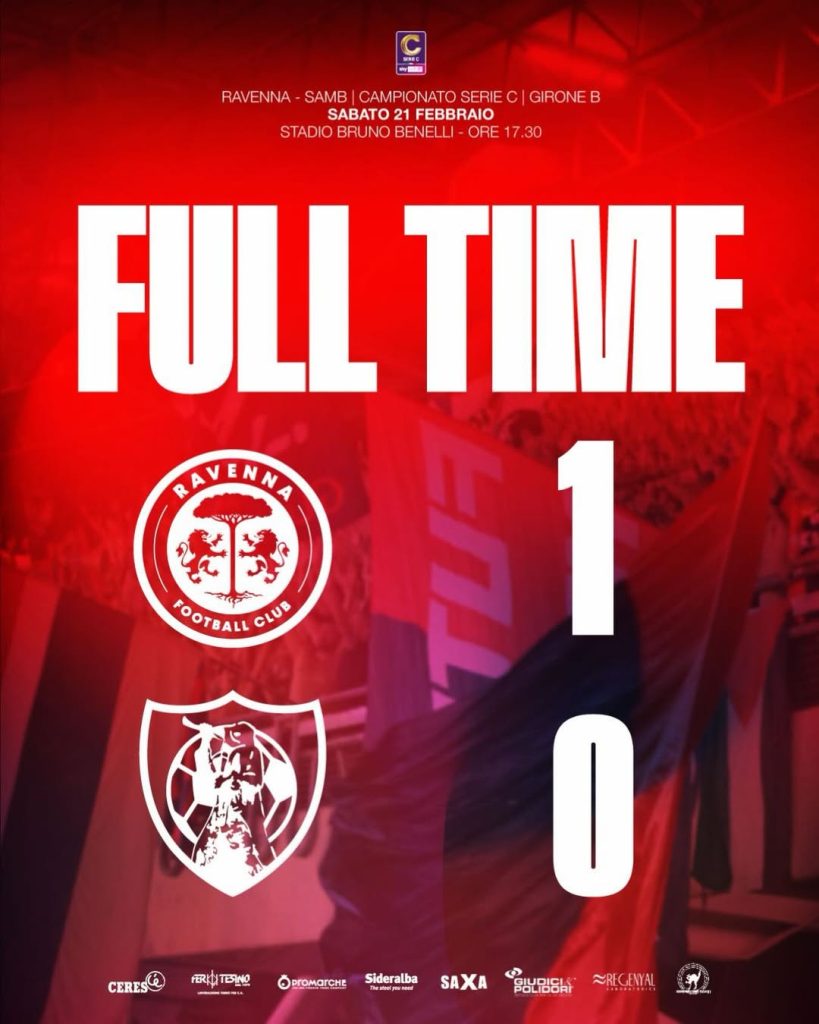 La Samb sconfitta dal Ravenna al “Benelli” nel match che ha visto i giallorossi risolvere la pratica di misura per 1-0.