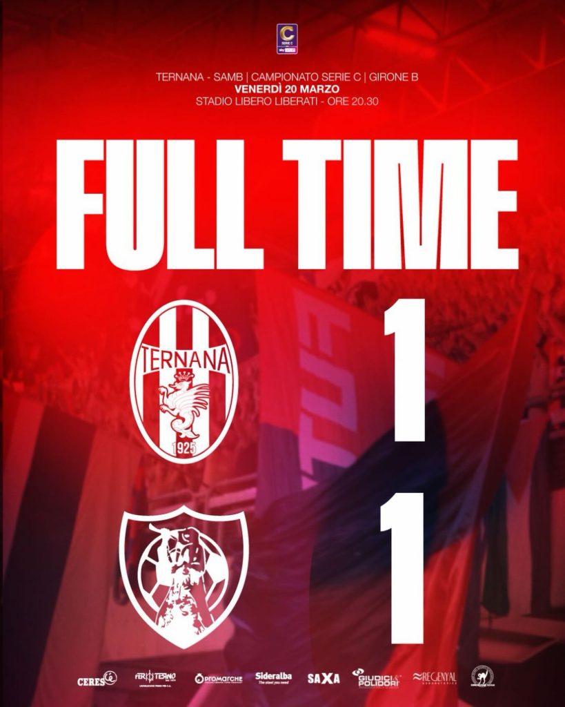 Al 64’, l’arbitro assegna un rigore alla Ternana per un fallo di Candellori su Capuano. Panico mette in rete. Allo scadere del match Zini acciuffa il pareggio con un colpo di testa da un pallone crossato in area da Piccoli.