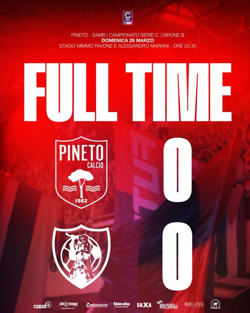 Nella ripresa la Samb inserisce Vincenzo Alfieri per Bongelli e cerca di aumentare il ritmo offensivo, ma il Pineto rimane pericoloso con Vigliotti. Al 65’, la Sambenedettese ha la migliore occasione della partita con Semprini, solo davanti a Tonti, ma il portiere si oppone
