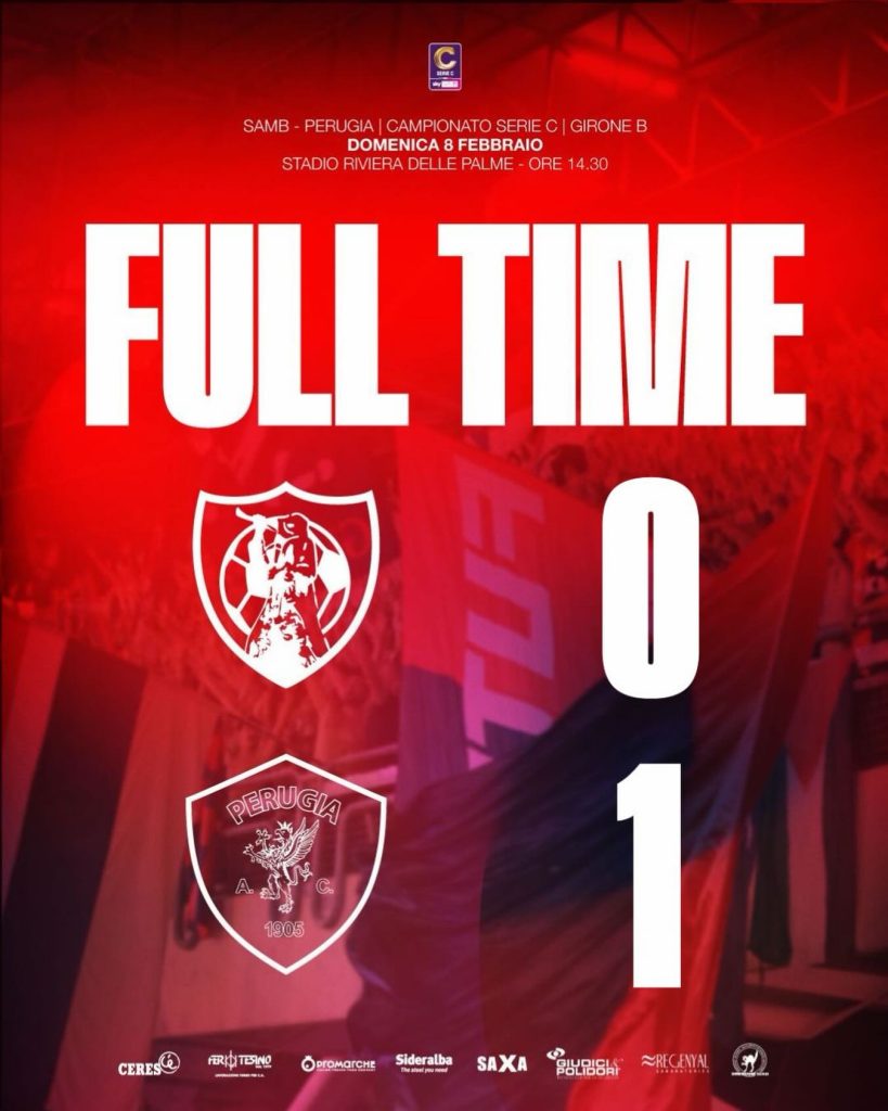 La Samb sconfitta dal Perugia. Ora la classifica fa paura