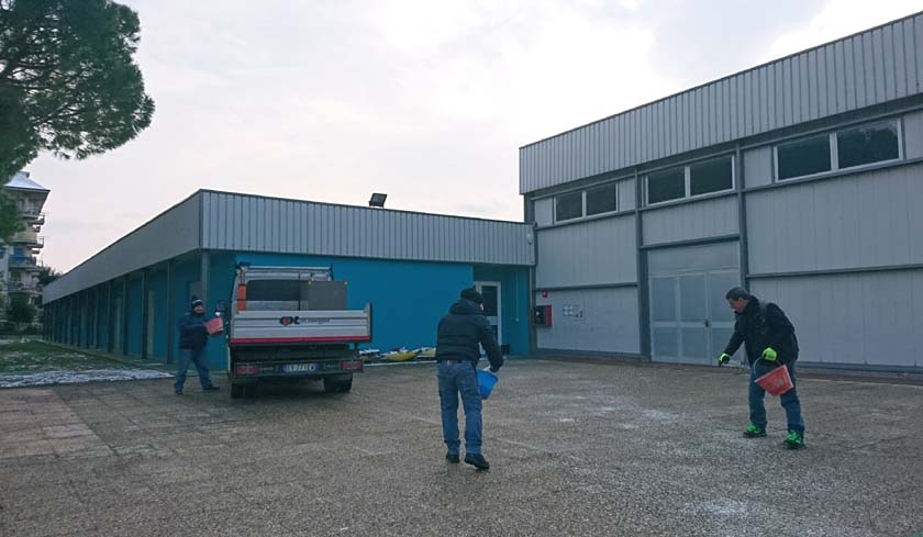 SAN BENEDETTO DEL TRONTO – Mercoledì 28 febbraio riaprono le scuole. Davanti ai plessi scolastici si sta spargendo il sale (foto) per evitare la formazione del ghiaccio e rendere agevole il rientro in classe degli allievi e del corpo docente. La sospensione delle lezioni per la giornata odierna era stata decisa lunedì dalla task force coordinata dal sindaco Pasqualino Piunti. Il gruppo comunale per le allerte meteo è tornato a riunirsi nel primo pomeriggio di oggi, martedì 27 febbraio. E’ stato stabilito che domani le scuole saranno aperte.
