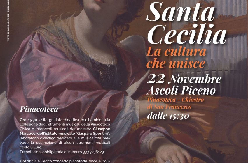 Il giorno di Santa Cecilia celebrato all’insegna della musica e dell’arte. Sabato 22 novembre, dalle ore 15.30, in Pinacoteca e al chiostro di San Francesco sono previsti diversi appuntamenti per promuovere l’arte e la cultura musicale, dando possibilità di espressione ai giovani talenti ascolani. Il progetto, nato da un’iniziativa dell’associazione Ascoli Da Vivere e promossa da Amministrazione Comunale e Musei Civici di Ascoli Piceno, si rivolge soprattutto ai bambini e ai giovani, grazie alla collaborazione tra diverse scuole di musica. “In una data importante come quella che celebra Santa Cecilia – ha detto il sindaco Marco Fioravanti – vogliamo realizzare un momento di unione e condivisione all’insegna della cultura. Una giornata per valorizzare i giovani talenti della nostra città e per dare visibilità alle tante eccellenze musicali e artistiche di Ascoli”.