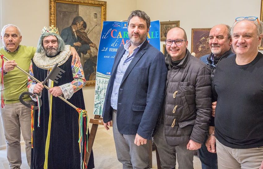 ASCOLI PICENO – Con la tradizionale cerimonia di consegna della chiave della città, questa mattina, dal delegato del sindaco, il consigliere comunale Alessandro Bono, a Re Carnevale – per l’occasione impersonato dalla Mascherina d’argento 2018, Stefano Cappelli, visto che la Mascherina d’oro, Marco Olori, era presente nella veste di presidente dell’associazione “Il Carnevale di Ascoli” – si entra ufficialmente nel clima che porterà, giovedì prossimo, all’apertura dell’edizione 2019 della kermesse carnascialesca ascolana. Un’edizione che – come evidenziato dal presidente Olori – si fonda sempre sui consolidati appuntamenti tradizionali, tra cui in primis il Carnevale delle scuole e il concorso per i gruppi mascherati, aggiungendo nuovi eventi per stimolare sempre più la partecipazione e il coinvolgimento dei più giovani come il Carnevale dei bambini in piazza Immacolata, nel pomeriggio di venerdì 1 marzo, e il laboratorio di costruzione ed interpretazione “Storie di maschere e Carnevali”, sempre per i bimbi, previsto in diverse zone del centro sia la mattina che nel pomeriggio di sabato 2 marzo. Ulteriore novità, quella che vedrà la presenza dei rappresentanti degli altri Carnevali del Piceno, in Piazza del Popolo, nella mattinata di giovedì grasso, al Carnevale delle scuole. Intanto proprio questa mattina si sono aperte ufficialmente le iscrizioni al concorso in maschera che si protrarranno fino alla mattinata di sabato prossimo, 2 marzo. Ed a proposito del concorso, era presente alla presentazione dell’edizione 2019 anche Pino Presciutti nella veste di presidente della giuria che valuterà i gruppi in gara. Giuria come sempre segreta, con nominativi di cui restano a conoscenza esclusivamente il presidente e gli stessi componenti.