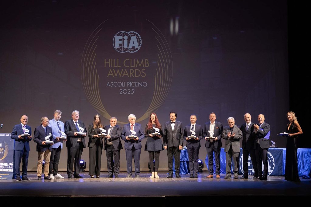 Dopo il venerdi dedicato alle riunioni tecniche sulla specialità, sabato 1 novembre è stato dedicato ad una visita-tour tra le bellezze artistiche e architettoniche della città da parte delle delegazioni e dei piloti, ed in serata si sono effettuate le premiazioni dei campioni. Con la professionale presentazione della giornalista Camilla Ronchi coadiuvata dalla voce locale del d.s. del Gruppo Sportivo Pierluigi Terrani, hanno portato il loro saluto il presidente del Gruppo Sportivo Giovanni Cuccioloni con un video dedicato alla corsa ascolana ed un saluto a tutti gli intervenuti, seguito dal presidente della Commissione FIA Salita lo slovacco Dusan Koblisek, del presidente dell’Alleanza Organizzatori lo svizzero Filippo Lurà e del presidente CONI Marche Fabio Luna. Particolarmente doverosa e sentita la commemorazione del costruttore Enzo Osella scomparso recentemente, che ha illuminato con la sua capacità e professionalità il mondo delle corse, in particolare l’ambiente delle salite dove le sue vetture hanno raccolto numerosissimi successi. Il successivo intervento dell’Assessore allo Sport di Ascoli Piceno Domenico Stallone ha voluto dare peso all’evento inserito a pieno merito negli ampi programmi di “Ascoli Piceno Città Europea dello Sport 2025” ed ha aperto la passerella dei campioni. Premiati i primi otto delle categorie 1 e 2, i vincitori di gruppo all’interno delle stesse e le Best Performances per ogni categoria.