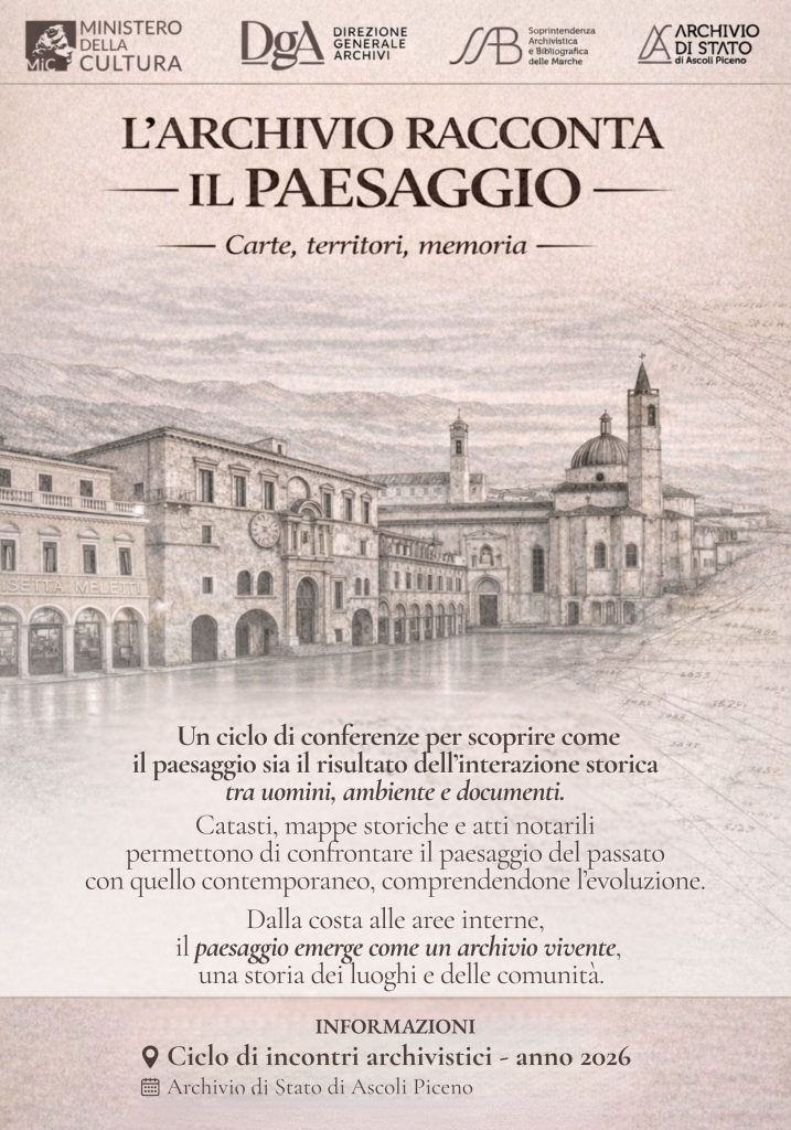 L’Archivio di Stato di Ascoli Piceno presenta “L’Archivio racconta il paesaggio”, un ciclo di conferenze che intende mostrare come l’archivio non sia soltanto memoria storica e radice identitaria di una comunità, ma anche uno strumento per comprendere come l’interazione tra uomini e ambiente abbia prodotto, nel tempo, il paesaggio che oggi abitiamo e osserviamo.