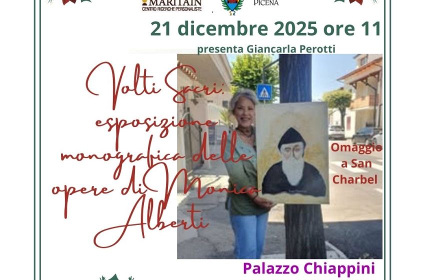 Domenica 21 dicembre 2025, alle ore 11, presso il Palazzo Chiappini – Casa Comunale di Acquaviva Picena sarà allestista una mostra dal titolo “Volti sacri: esposizione monografica delle opere di Monica Alberti”, con la presenza del sindaco Sante Infriccioli, dell’assessore alla cultura Marianna Spaccasassi e l’assessore alle politiche sociali Piera Rossi.